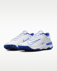 Make the memorable plays when it matters most. With sneaker-like comfort and multipurpose playability for all positions, this is the cleat that can help you impact the game for innings on end. An aggressive traction pattern and rubber pegs provide confidence and security when you race around the bags or get a bead on an incoming line drive in the field. Product Details - Shown: White/Hyper Royal/Deep Royal/Pure Platinum - Style: FD2746-103 SIZE & FIT Fits small; we recommend ordering a half size up