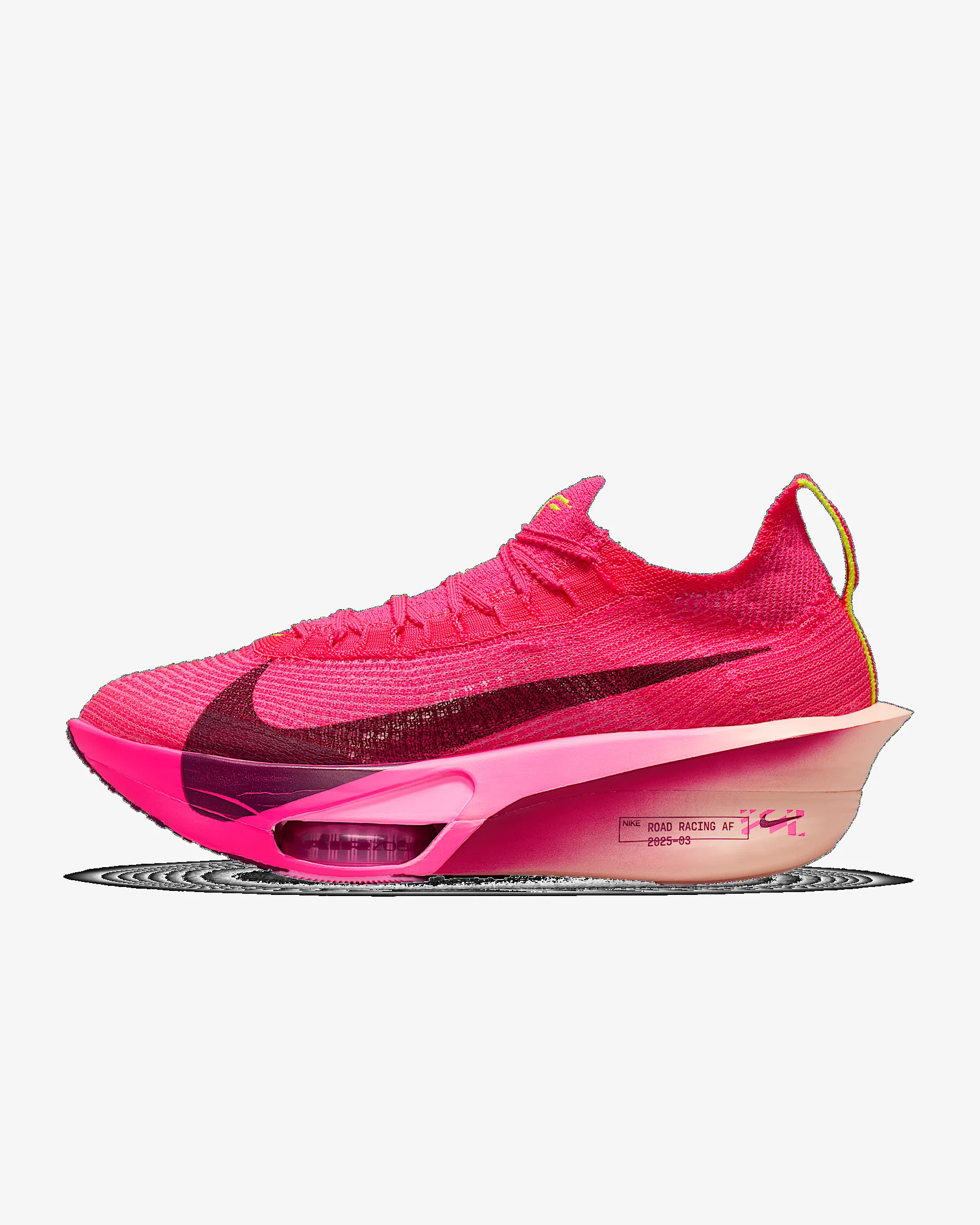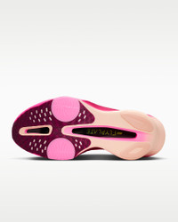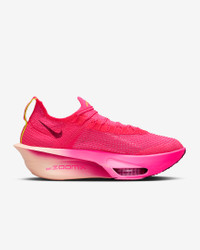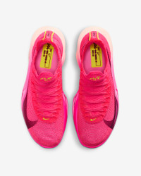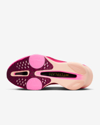 Fine-tuned for marathon speed, the Alphafly 3 helps push you beyond what you thought possible. Three innovative technologies power your run: A double dose of Air Zoom units helps launch you into your next step; a full-length carbon fiber plate helps propel you forward with ease; and a heel-to-toe ZoomX foam midsole helps keep you fresh from start to 26.2. Time to leave your old personal records in the dust. More Benefits - Notched laces offer a secure but soft lace-up. - Integrated knit tongue with lofted padding helps alleviate lace pressure. Product Details - Weight: Approx. 174g/6.1oz (Women's US 8) - Heel-to-toe drop: 8mm - Shown: Hyper Pink/Crimson Tint/Pink Spell/Bordeaux - Style: FD8315-601 SIZE & FIT Fits small; we recommend ordering a half size up