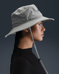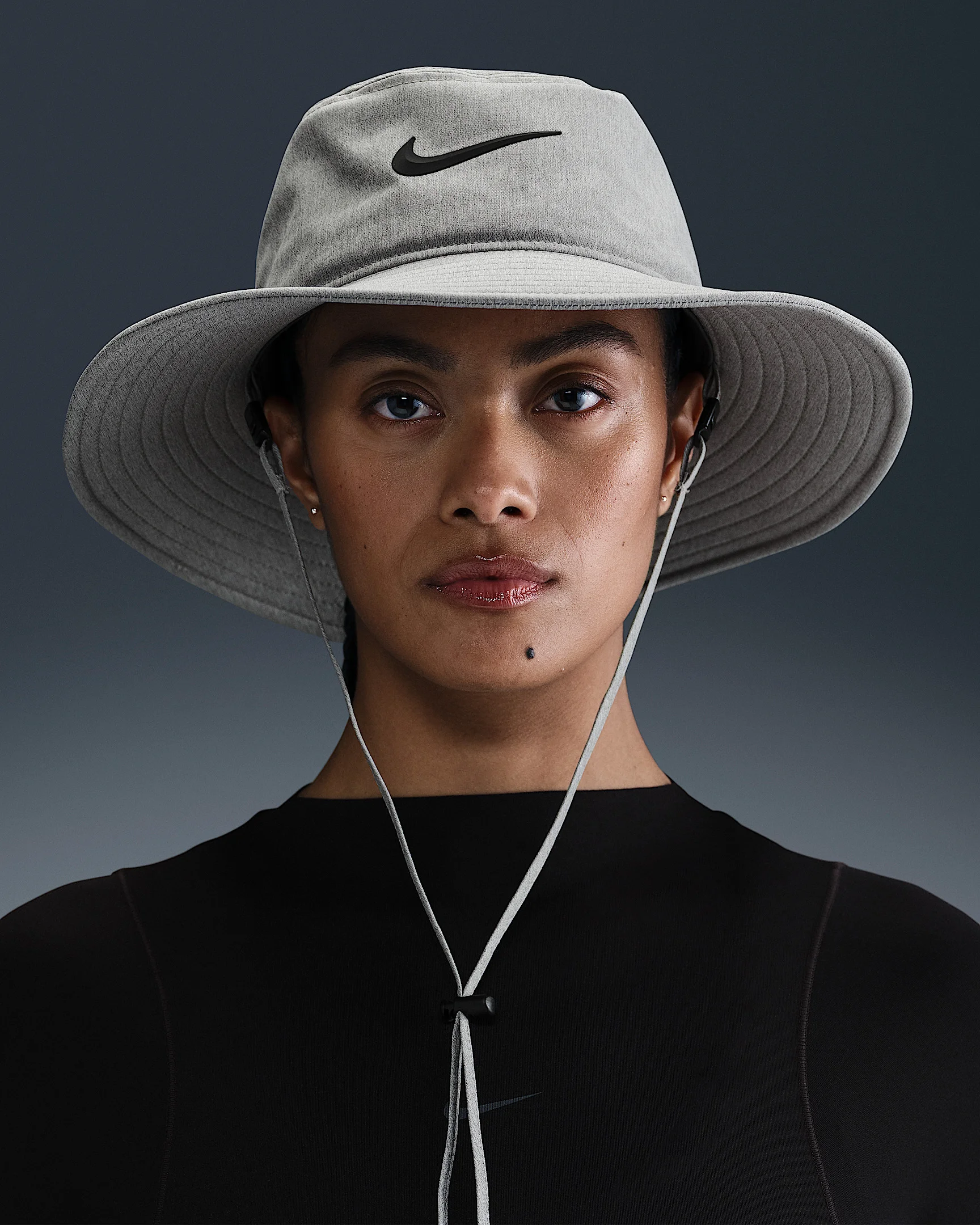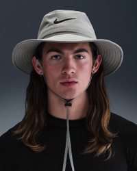 An extra-wide brim gives this mid-depth bucket hat plenty of 360-degree shade around your face and neck. Nike Dri-FIT technology moves sweat away from your skin for quicker evaporation, helping you stay dry and comfortable. Benefits - Smooth woven has a light and durable feel. - Removable chin strap can be adjusted for a better fit. Product Details - 100% polyester - Do not wash - Imported - Shown: Light Smoke Grey/Black/Black - Style: HJ7158-012