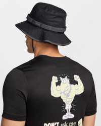 Apex bucket hats all have a mid depth and 360-degree coverage. Nike Dri-FIT technology moves sweat away from your skin for quicker evaporation, helping you stay dry and comfortable. Benefits - Cotton-nylon fabric has a smooth texture and a bit of stretch. - Adjustable drawcord cinches up and down for a custom fit. Product Details - Daisy chain webbing around the crown - Embroidered eyelets - 67% cotton/29% nylon/4% spandex - Hand wash - Imported - Shown: Black/Anthracite/Anthracite/Anthracite - Style: HJ3683-010