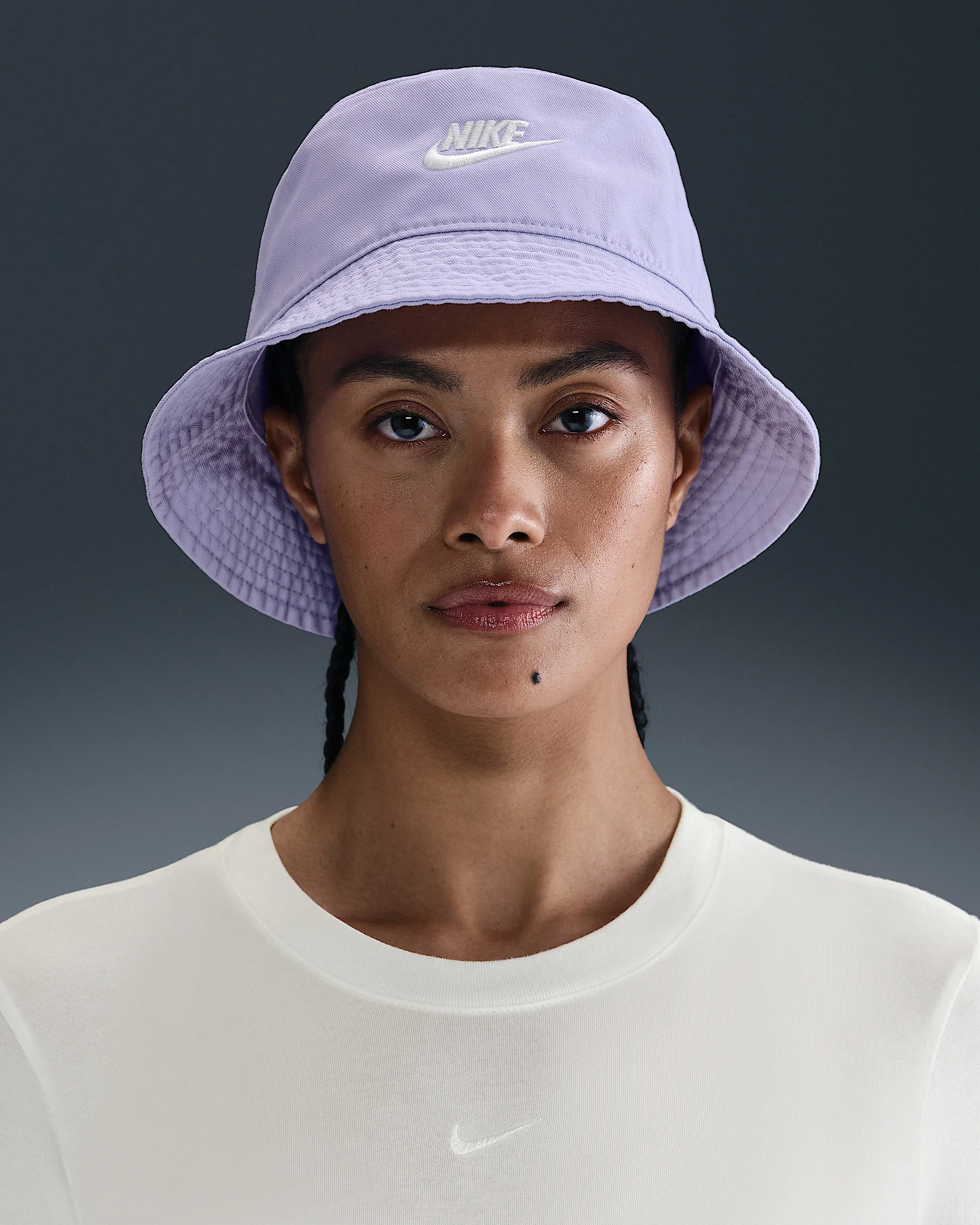 Welcome the Nike Apex Bucket into your lineup. The mid-depth design is made with soft cotton and features an embroidered Futura logo for a clean Nike finish. The wash treatment softens the feel and gives it a vintage look that keeps aging to perfection the more you wear it. Benefits - Washed cotton twill fabric has a soft feel with a vintage finish. - Mid-depth bucket design gives you 360 degrees of coverage. Product Details - Embroidered Futura logo - 100% cotton - Hand wash - Imported - Shown: Hydrangeas/White - Style: FB5381-515