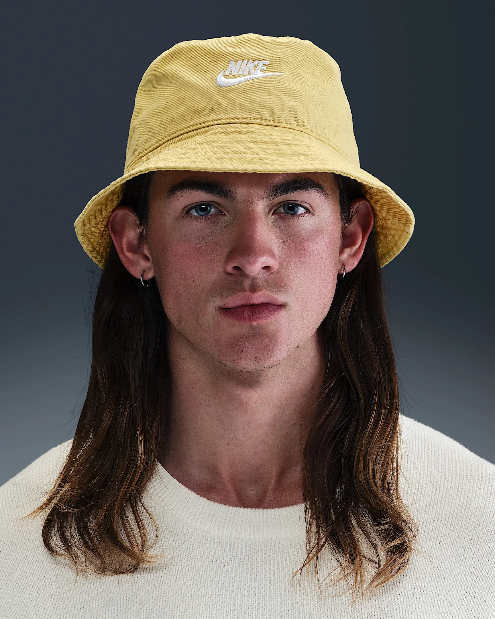 Welcome the Nike Apex Bucket into your lineup. The mid-depth design is made with soft cotton and features an embroidered Futura logo for a clean Nike finish. The wash treatment softens the feel and gives it a vintage look that keeps aging to perfection the more you wear it. Benefits - Washed cotton twill fabric has a soft feel with a vintage finish. - Mid-depth bucket design gives you 360 degrees of coverage. Product Details - Embroidered Futura logo - 100% cotton - Hand wash - Imported - Shown: Saturn Gold/White - Style: FB5381-700