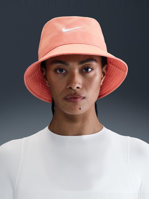 Welcome the Nike Apex Bucket into your lineup. It's the hat you never knew you needed–until now. The mid-depth design is made with soft woven twill and features an embroidered, color contrast Swoosh logo on the front panel for a clean, Nike finish. A wraparound brim gives you 360 degrees of coverage, so you can keep your look fresh, rain or shine. Benefits - Soft woven twill fabric feels smooth and soft on your skin. - Mid-depth bucket design gives you 360 degrees of coverage. Product Details - 100% polyester - Hand wash - Imported - Shown: Apricot Agate/White - Style: FB5382-844