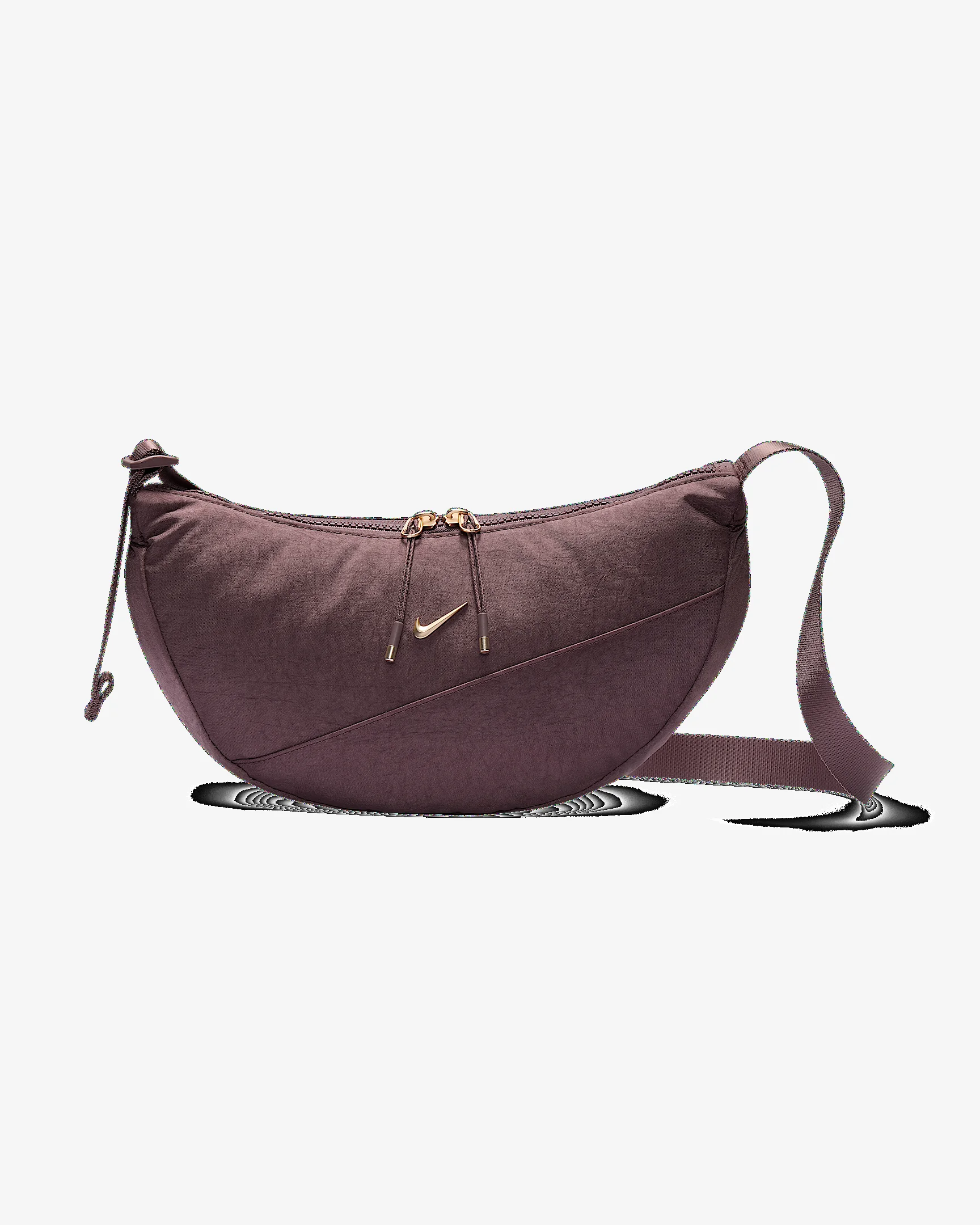 Keep your essentials close and your style game on point with the Nike Aura crossbody bag. The main pocket provides quick access to small items while interior slip pockets make organization easy. Product Details - 12" W x 7" H x 4" D - Adjustable strap - Body: 100% nylon. Lining: 100% polyester. - Spot clean - Imported - Shown: Tattoo/Tattoo/Light Transparent Gold - Style: HQ4370-502