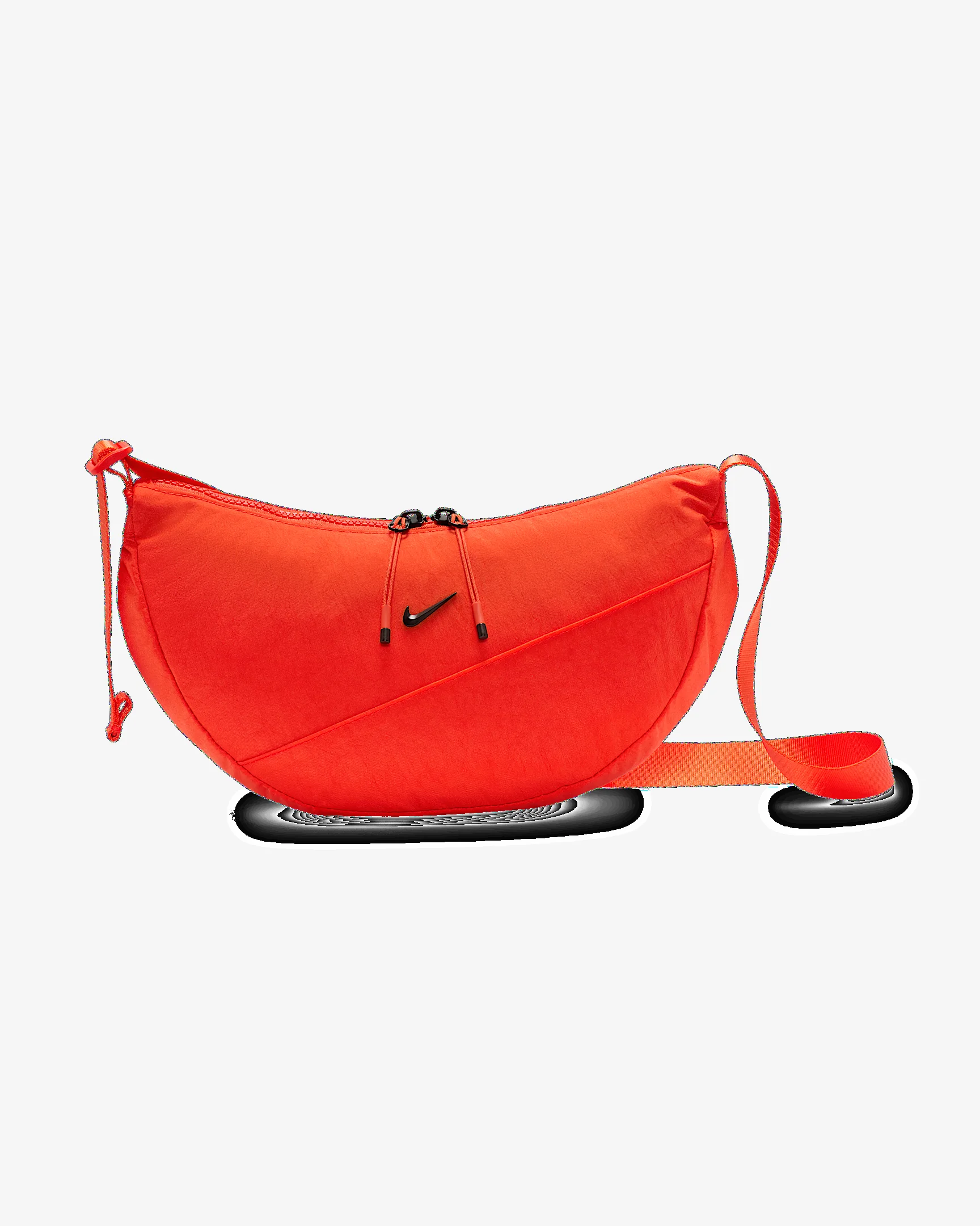 Keep your essentials close and your style game on point with the Nike Aura crossbody bag. The main pocket provides quick access to small items while interior slip pockets make organization easy. Product Details - 12" W x 7" H x 4" D - Adjustable strap - Body: 100% nylon. Lining: 100% polyester. - Spot clean - Imported - Shown: Picante Red/Picante Red/SM BLK ELCTRDEP - Style: HQ4370-633