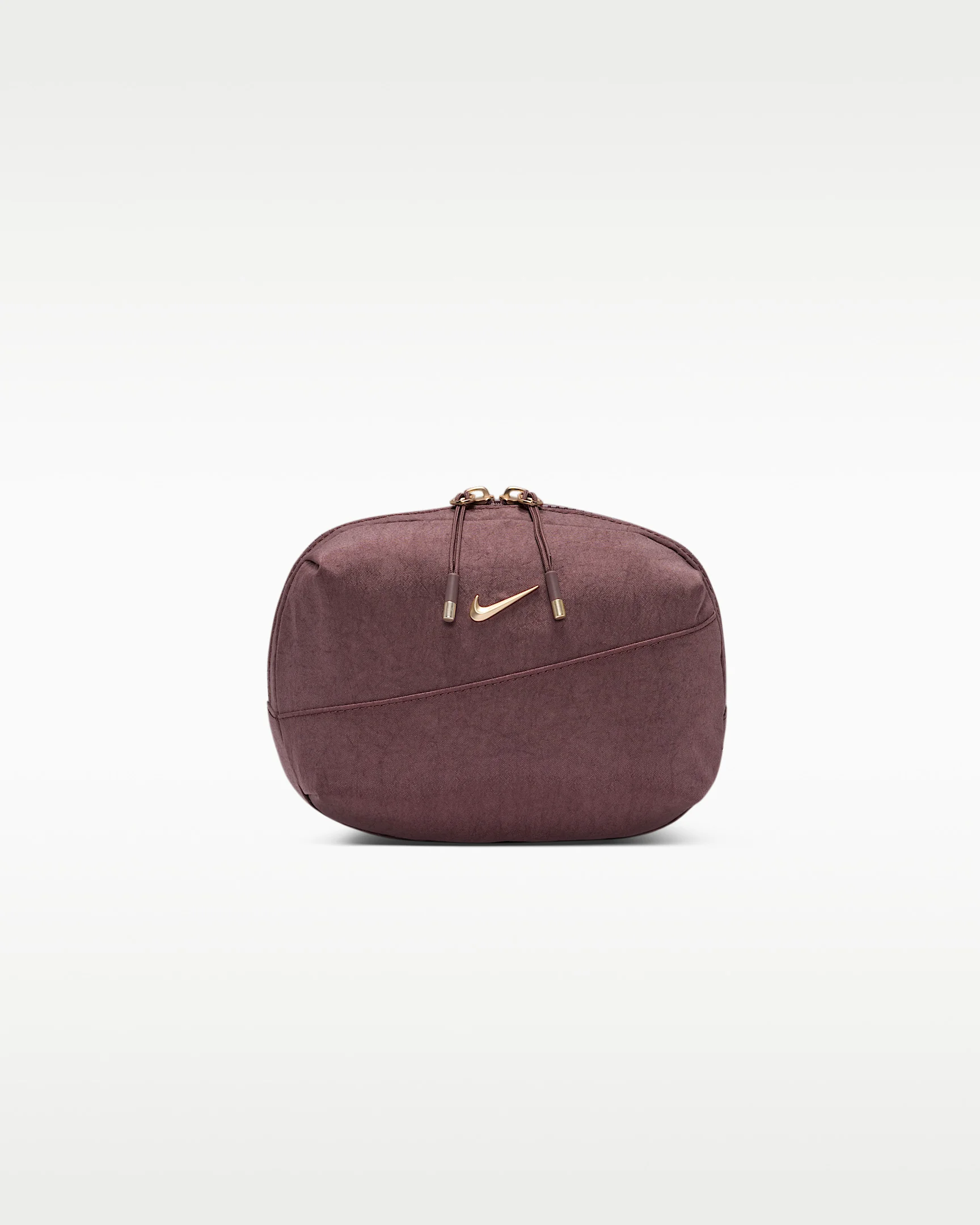 Keep your essentials close and your style game on point. A 2-liter volume capacity makes this bag ideal for carrying your keys, cards and phone. A rear zippered pocket provides quick access to small items while interior slip pockets make organization easy. An aluminum Swoosh logo adds a splash of sophisticated flair while an adjustable strap gives you multiple styling options. Product Details - 7"L x 3"W x 5"H - Body: 100% nylon. Lining: 59% nylon/41% polyester. - Spot clean - Imported - Shown: Tattoo/Tattoo/Light Transparent Gold - Style: HM6120-502