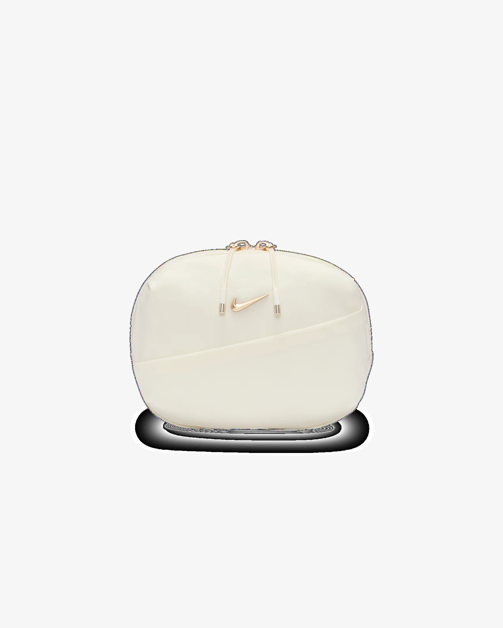 Keep your essentials close and your style game on point. A 2-liter volume capacity makes this bag ideal for carrying your keys, cards and phone. A rear zippered pocket provides quick access to small items while interior slip pockets make organization easy. An aluminum Swoosh logo adds a splash of sophisticated flair while an adjustable strap gives you multiple styling options. Product Details - 7"L x 3"W x 5"H - Body: 100% nylon. Lining: 59% nylon/41% polyester. - Spot clean - Imported - Shown: Sail/Sail/Light Transparent Gold - Style: HM6120-133