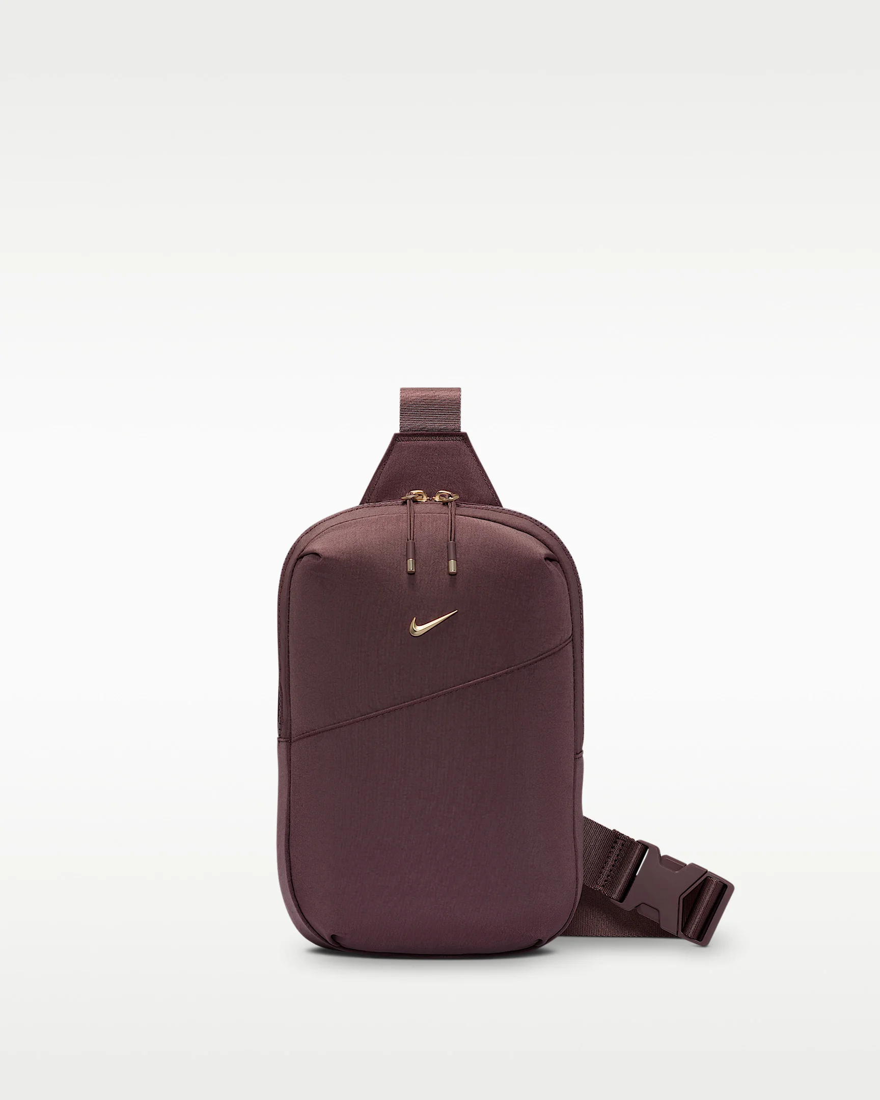 Keep your essentials close and your style game on point with the Nike Aura Crossbody Bag. Main pocket provides quick access to small items while interior zip and slip pockets make organization easy. Product Details - 7" W x 11" H x 2" D - Adjustable strap - Body: 100% nylon. Lining: 100% polyester. - Spot clean - Imported - Shown: Tattoo/Tattoo/Light Transparent Gold - Style: HF7038-502