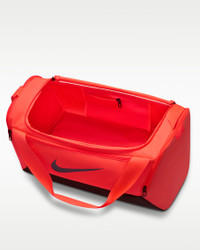 Hit the gym with the duffel bag made to hold all your gear. The ventilated side compartment separates your smelly shoes from your post-sweat-sesh clothes. Get quick access to your phone or keys with the zippered front pocket when you're on the go. Toss it in your locker, next to the power rack and, when you're done, in your car—the coated bottom helps shield your things from bumps, scrapes and spills. Benefits - Spacious zippered main compartment provides easy access to your gear. - Inner zippered pocket stashes your valuables. - Adjustable shoulder strap and dual handles give you comfortable carrying options. - Ventilated side pocket keeps dirty shoes and sweaty clothes separate from your clean gear. - Side pockets hold a water bottle or other small essentials. Product Details - 20"L x 11"W x 11"H - 100% polyester - Spot clean - Imported - Shown: Hot Lava/Black/Diffused Blue - Style: DM3976-804