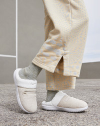 There's nothing like cozying up to a campfire, which is why we made these extra toasty and super comfortable slippers. Fleece-like material blends fuzzy and knit textures for the perfect wintertime warmth. And the marshmallow-like foam midsole/outsole sweetens the deal. Slip them on and get lounging or step out of the tent and enjoy the fresh mountain air. Benefits - Fleece-like material lines both the opening and inside for added warmth and coziness. - Knit outer material adds a classic wintertime aesthetic. - Zipper pocket on the top lets you stash small items like keys or cash. - Foam midsole/outsole delivers soft, lightweight comfort. - Outsole traction pattern provides grip on a variety of surfaces. Product Details - Shown: Sanddrift/Summit White/Phantom/Light Bone - Style: DR8883-100