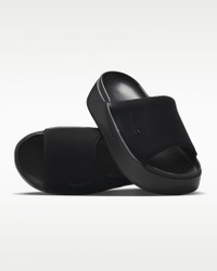 Enjoy a calm, comfortable experience—no matter where your day off takes you. Made with soft foam and synthetic leather, the minimal design makes these slides easy to style. This edition has just enough height to give you a lift. Benefits - Textured footbed provides grip to help keep your feet in place. - Outer shell is made from water-friendly foam that is easy to clean. - Rubber outsole gives you excellent traction even on slippery surfaces. Product Details - Shown: Black/Black - Style: IO0495-001