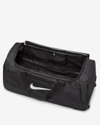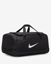 The Nike Club Team Roller Bag is designed with wheels and an adjustable handle for easy carrying. It has ample storage for all of your gear. Benefits - Adjustable handle and wheels offer easier hauling. - Zippered main compartment provides secure storage. - Grab handle on the side gives an alternative carrying option. Product Details - 32"L x 15"H x 14"W - 120 L - 100% polyester - Spot clean - Imported - Shown: Black/Black/White - Style: BA5199-010
