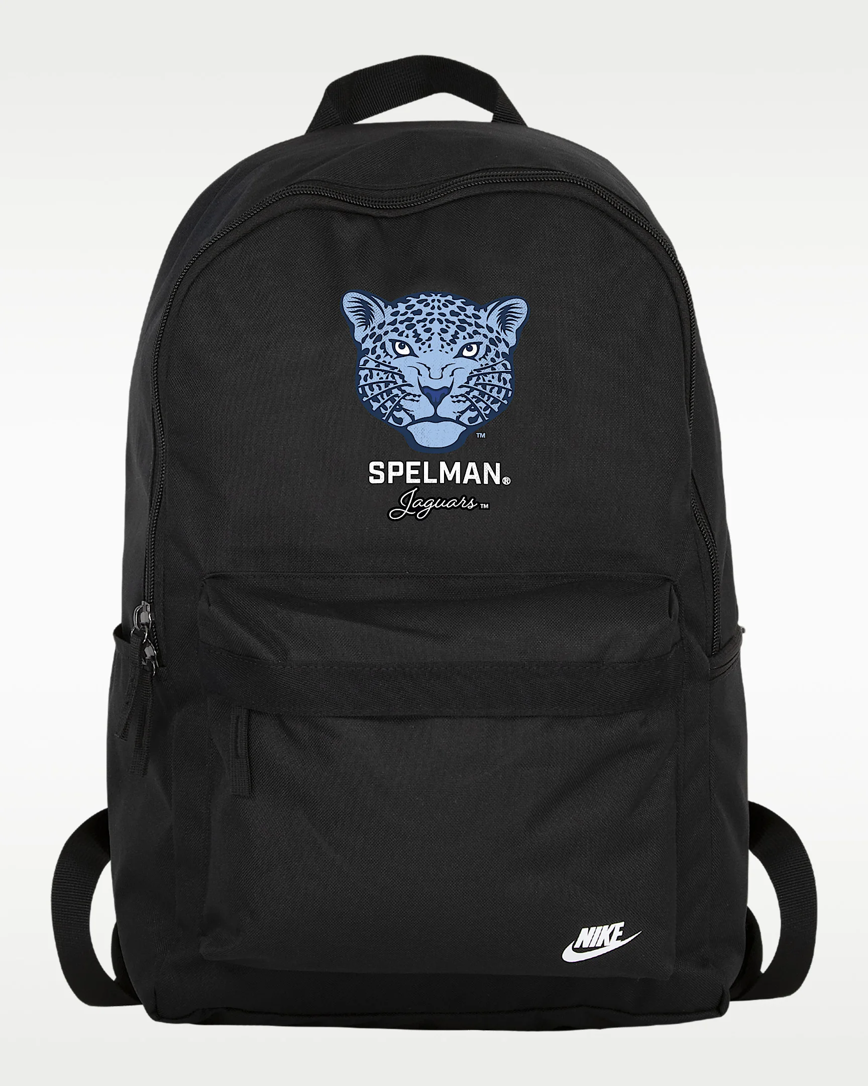 Show your Jaguars pride with the Nike Heritage Backpack. Its spacious main compartment features a sleeve that holds up to a 15" laptop, so your computer is never out of reach. Two zippered accessories pockets help keep your gear organized and easy to grab. Benefits - This style celebrates and commemorates an institution enacting positive change for the next generation of scholars, athletes and leaders of society, specifically those attending Historically Black Colleges and Universities (HBCUs). - The shoulder straps and back are padded for extra comfort. Product Details - 100% polyester - 25L - 17" H x 12" W x 6" D - Spot clean - Imported - Shown: Black - Style: A11956SPEC25-BLK