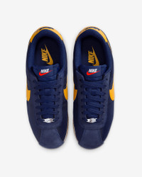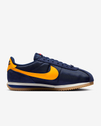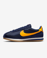 You spoke. We listened. Based on your feedback, we've revamped the original Cortez while maintaining the retro appeal you know and love. Now with a wider toe area and firmer side panels, you can comfortably wear them day in and day out. Plus, reengineered textile helps prevent warping or creasing. Cortez fans—this one’s for you. Benefits - Reengineered upper with suede accents is extra durable to help prevent warping, creasing and scuffing. - Wider toe area creates a more comfortable fit. - Firmer side panels help keep your foot in place. - Foam midsole with iconic wedge insert provides lightweight cushioning. - Herringbone outsole pattern pairs durable traction and heritage style. Product Details - Shown: Midnight Navy/Blue Void/Sail/University Gold - Style: DZ2795-403 SIZE & FIT Fits small; we recommend ordering a half size up