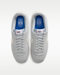 You spoke. We listened. Based on your feedback, we've revamped the original Cortez while maintaining the retro appeal you know and love. This leather version has a wider toe area and firmer side panels, so you can comfortably wear them all day without any warping. Cortez fans—this one’s for you. Benefits - Reengineered leather upper is extra durable to help prevent warping, creasing and scuffing. - Wider toe box provides a more comfortable fit. - Firmer side panels help keep your foot in place for a more stable feel. - Herringbone outsole pattern pairs durable traction and heritage style. Product Details - Padded collar - Foam midsole - Rubber outsole - Shown: Light Smoke Grey/Sail/Gum Light Brown/Light Orewood Brown - Style: IB1857-002