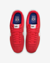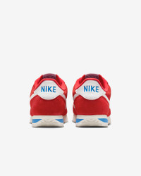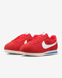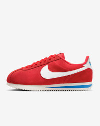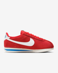 You spoke. We listened. Based on your feedback, we've revamped the original Cortez while maintaining the retro appeal you know and love. This leather version has a wider toe area and firmer side panels, so you can comfortably wear them all day without any warping. Cortez fans—this one’s for you. Benefits - Reengineered leather upper is extra durable to help prevent warping, creasing and scuffing. - Wider toe box provides a more comfortable fit. - Firmer side panels help keep your foot in place for a more stable feel. - Herringbone outsole pattern pairs durable traction and heritage style. Product Details - Padded collar - Foam midsole - Rubber outsole - Shown: Light Crimson/Light Photo Blue/Sail/White - Style: IB1857-600