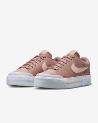 Elevate your style with the Nike Court Legacy Lift. Its platform midsole delivers a bold statement on top of the classic, easy-to-wear design. And don't worry, we've kept the fit you love. Benefits - Subtly layered upper keeps it classic and easy to wear. - Rubber outsole delivers traction and durability. - Padded heel and plush tongue feel soft. Product Details - Shown: Particle Pink/Rose Gold/White/Washed Coral - Style: DM7590-601