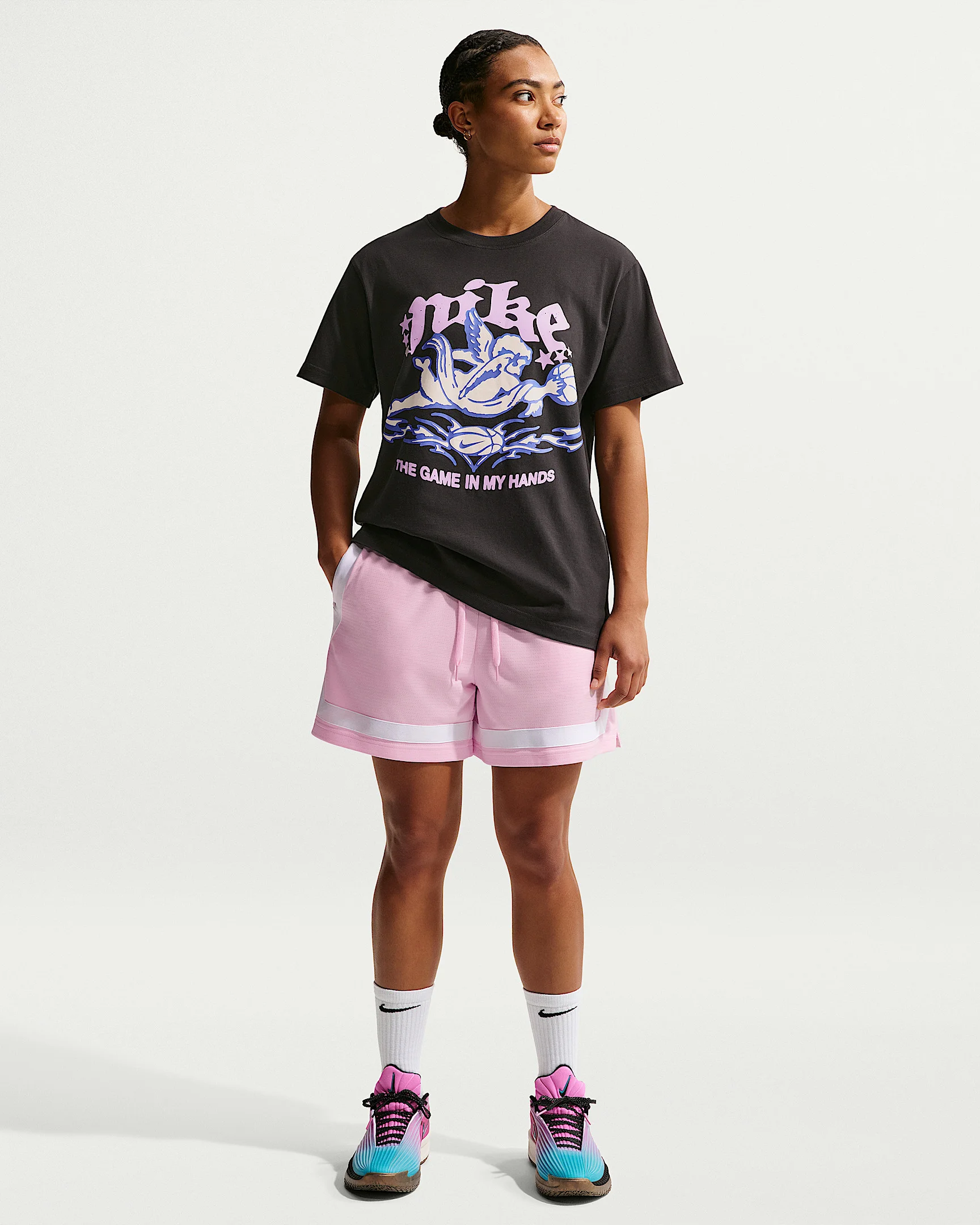 Wider through the legs and hips, these lightweight, sweat-wicking Crossover shorts help you move freely up and down the court. An updated drawcord can be tied inside or outside for comfort and style. Benefits - Nike Dri-FIT technology moves sweat away from your skin for quicker evaporation, helping you stay dry and comfortable. - Pockets provide quick storage for keys, phone and cold hands. Product Details - 100% polyester - Machine wash - Imported - Shown: Pink Foam/White/White - Style: FV8505-663 SIZE & FIT Model is wearing size S and is 5′10″178cm Standard fit: easy and traditional
