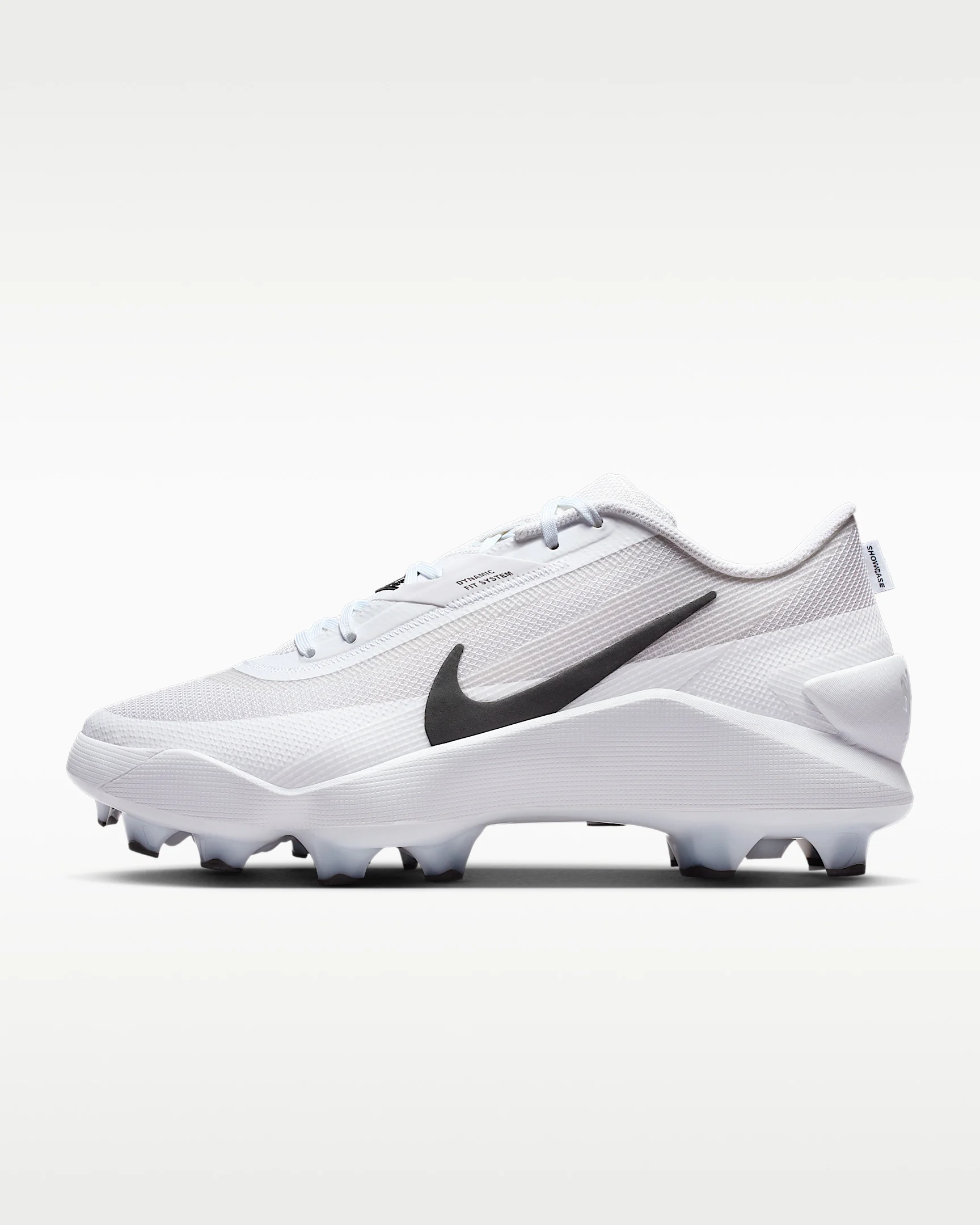 Unleash your inner beast and mash whatever mistake was extended your way in the Nike Diamond Showcase. Stable thanks to a full-length plate and secure with a midfoot band, it’s made to optimize your power wherever pure force is required to change the game. More Benefits - Our player-approved Drag-On technology provides lightweight support for toe drags. - Durable mesh upper - 5/8 raised collar heights Product Details - Shown: White/Black - Style: II7349-100