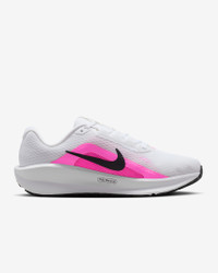 Whether you’re starting your running journey or an expert eager to switch up your pace, the Downshifter 13 is down for the ride. With breathable mesh and an updated internal fit band, it helps you find that extra gear or take that first stride toward chasing down your goals. Product Details - Weight: Approx. 242g/8.5oz (Women's US 8) - Heel-to-toe drop: 10mm - Reflective details - Not intended for use as Personal Protective Equipment (PPE) - Shown: White/Black/Pink Spell - Style: FZ3088-109