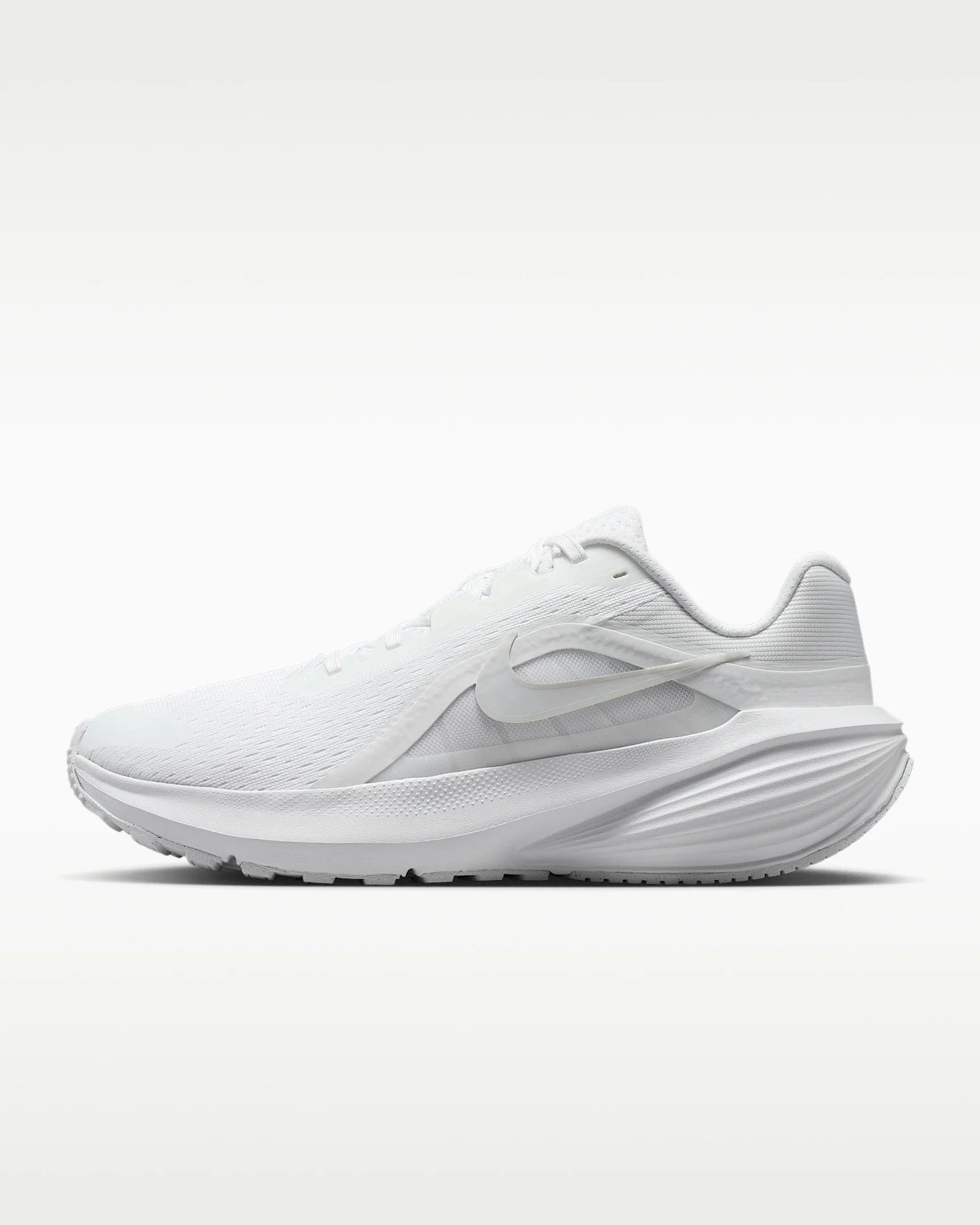 Kick your stride into another gear in the Downshifter 14. We increased the amount of cushioning in the midsole for more comfort and responsiveness than the previous iteration. Plus, the upper is made with an open-hole mesh for optimal breathability and a midfoot band gives you a locked-in feel. Benefits - Engineered open-hole mesh on the upper offers breathability. - We increased the amount of cushioning in the midsole for more comfort and bounce. - Internal fit band offers containment around the midfoot for a locked-in feel. Product Details - Weight Approx.: 276g (Women's US 8) - Heel-to-toe drop: 10mm - Shown: White/White - Style: IB1899-102