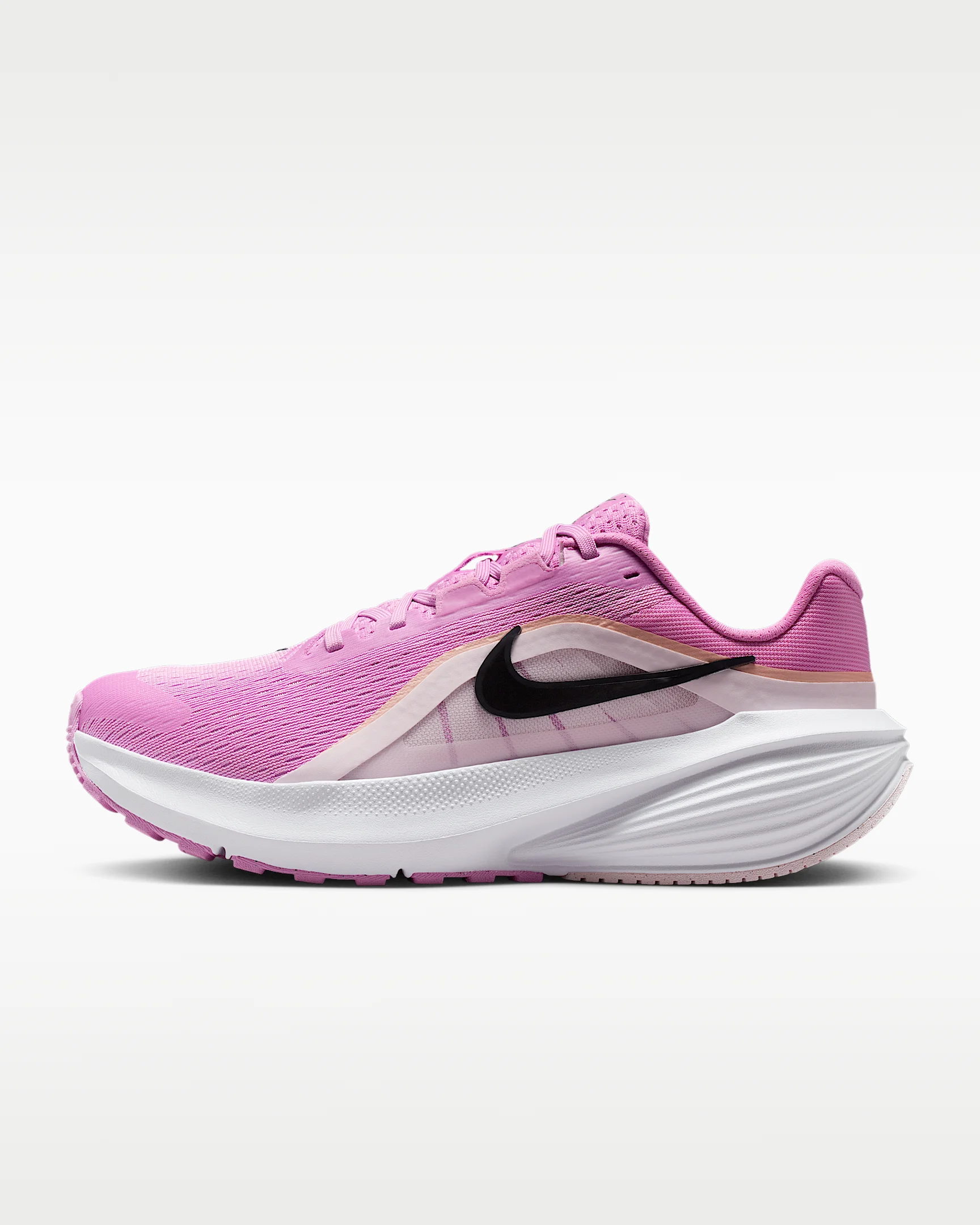 Kick your stride into another gear in the Downshifter 14. We increased the amount of cushioning in the midsole for more comfort and responsiveness than the previous iteration. Plus, the upper is made with an open-hole mesh for optimal breathability and a midfoot band gives you a locked-in feel. More Benefits - Increase foam stack height - Open-hole mesh upper Product Details - Weight Approx.: 276g (Women’s US 8) - Heel-to-toe drop: 10mm - Low-cut collar - Classic laces - Shown: Light Magenta/Off Noir/White/Black - Style: IR5096-501