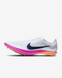 One of the fastest long-distance track spikes to ever cross the finish line turns up the tempo even more. Updated spikes, full-length ZoomX foam and a lighter, more responsive plate are ready for speed and stamina. Product Details - Weight: Approx. 130g/4.6oz (Men's US 8.5, Women's US 10) - Shown: White/Hyper Turquoise/Fire Pink/Obsidian - Style: FD8413-100