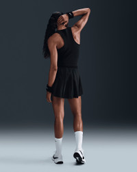 Smooth on the inside but ribbed on the outside, this sweat-wicking tank top gives you plenty of stretch with a snug, distraction-free fit. Benefits - Nike Dri-FIT technology moves sweat away from your skin for quicker evaporation, helping you stay dry and comfortable. - High neckline offers coverage in all your stances. Product Details - NikeCourt logo on chest - 71% Polyester/29% spandex - Machine wash - Imported - Shown: Black/Black - Style: FZ6657-010 SIZE & FIT Model is wearing size S and is 5′10″178cm Tight fit: snug and form-fitting
