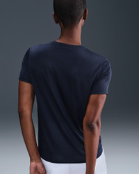 Turn up the heat in this relaxed tee. Sleek fabric wicks sweat away so you stay dry and comfy while you work out. Benefits - Nike Dri-FIT technology moves sweat away from your skin for quicker evaporation, helping you stay dry and comfortable. - The classic fit tee silhouette is relaxed through the body and hips. Product Details - 100% polyester - Standard fit for a relaxed, easy feel - Machine wash - Imported - Shown: Midnight Navy/White - Style: DX0687-410 SIZE & FIT Model is wearing size S and is 5′11″180cm Standard fit: easy and traditional