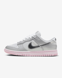 Elevate your 'fit in this Y2K-inspired shoe. Crafted with premium leather, it's the classic Dunk made new again. Metallic overlays deliver the style you expect while a pop of color is the cherry on the bottom. It's your time to shine! Benefits - Real leather upper softens and gains vintage character with wear. - Foam midsole offers lightweight, responsive cushioning. - Rubber outsole with our classic hoops pivot circle adds durability and traction. Product Details - Low-cut collar - Foam insole - Shown: Photon Dust/Pink Foam/Medium Soft Pink/Metallic Silver - Style: HM3698-006