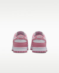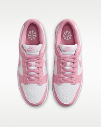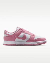 You can always count on a classic. The Dunk Low pairs its iconic color blocking with premium materials and plush padding for game-changing comfort that lasts. The styling possibilities are endless—how will you wear your Dunks? Benefits - Crisp leather upper has a slight sheen and ages to soft perfection. - Foam midsole offers lightweight, responsive cushioning. - Rubber outsole with classic pivot circle adds durable traction and heritage style. Product Details - Padded collar - Perforations on toe box - Shown: White/Elemental Pink - Style: DD1873-112 SIZE & FIT Fits large; we recommend ordering a half size down