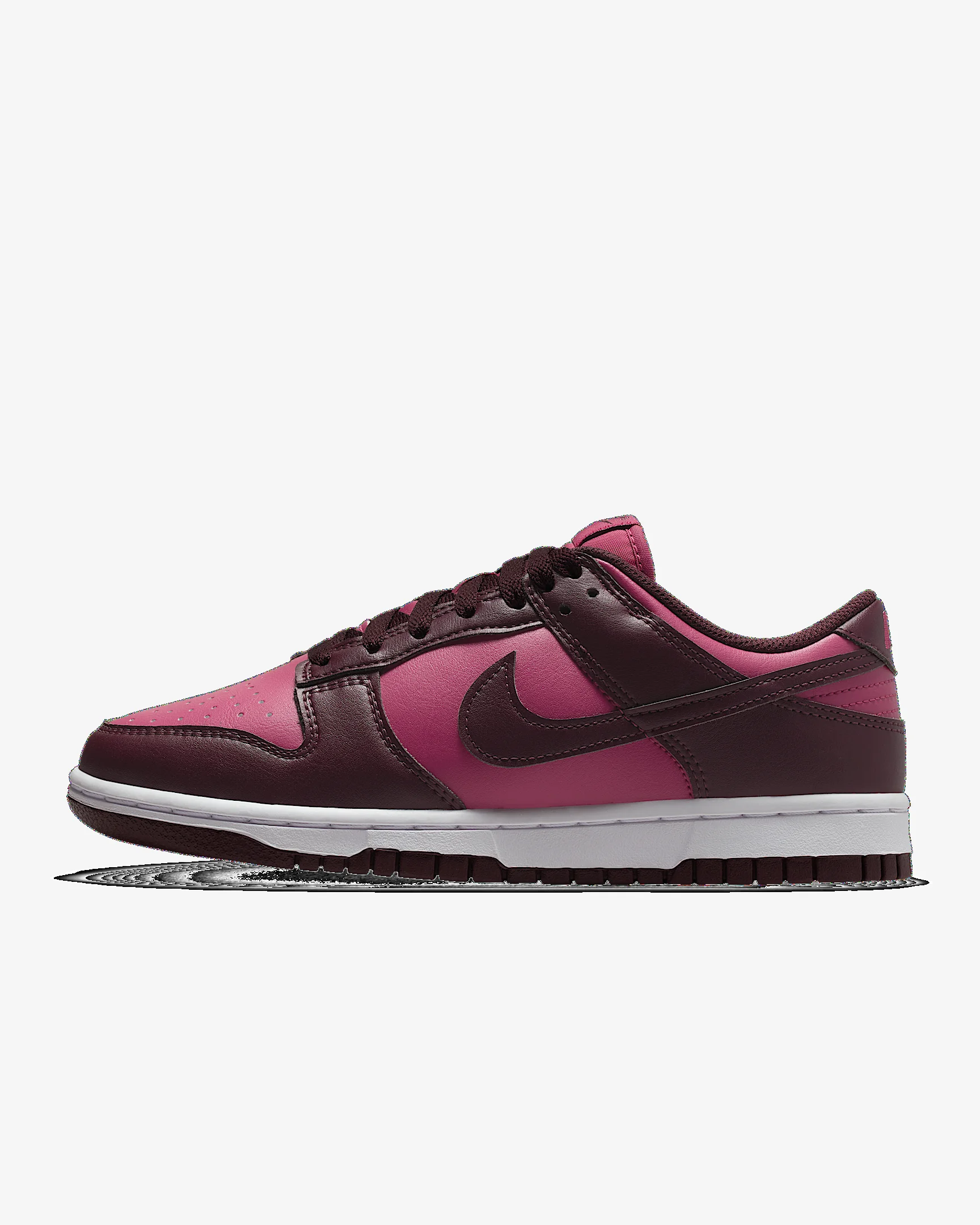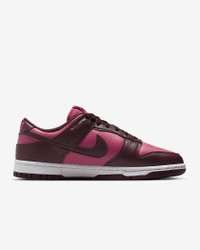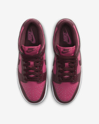 You can always count on a classic. The Dunk Low pairs its iconic color blocking with plush padding for game-changing comfort. The possibilities are endless—how will you wear your Dunks? Benefits - Synthetic leather upper softens and gains vintage character with wear. - Foam midsole offers lightweight cushioning. - Rubber outsole with classic pivot circle adds durable traction and heritage style. Product Details - Padded collar - Perforated toe box - Shown: Sweet Beet/White/Burgundy Crush - Style: IM6572-600