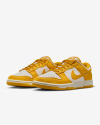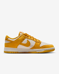 You can always count on a classic. The Dunk Low pairs its iconic color blocking with mixed materials and plush padding for game-changing comfort. The possibilities are endless—how will you wear your Dunks? Benefits - Synthetic leather and textile upper softens and gains vintage character with wear. - Foam midsole offers lightweight cushioning. - Rubber outsole with classic pivot circle adds durable traction and heritage style. Product Details - Shown: Pale Ivory/Sail/Metallic Gold/Dark Sulfur - Style: IB4417-101