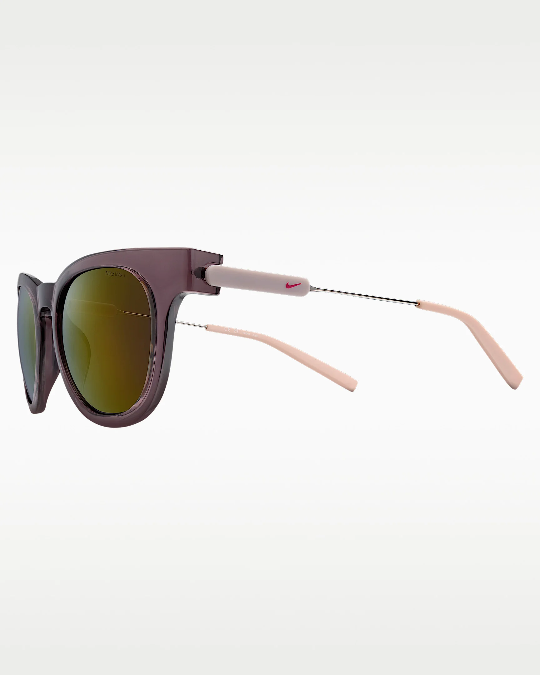 Elevate your style with the Nike Essence Trend sunglasses, featuring a chic semi-transparent frame for effortless sophistication. Designed for both comfort and flair, these sunglasses are perfect for sunny-day adventures or casual outings. Benefits - Nike Max + helps reduce light reflection and provides precise vision from all angles. - 6-base curved lens offers medium coverage with moderate peripheral light blockage. - Adjustable temples with rubber tips for snug, stable grip. - Lightweight, durable injected frame with metal temples. - 100% UVA/UVB protection. - Frame size: 52mm lens width; 20mm bridge width; 145mm temple length Product Details - Shown: Taupe Grey/Fuchsia - Style: NKIF1056X-204