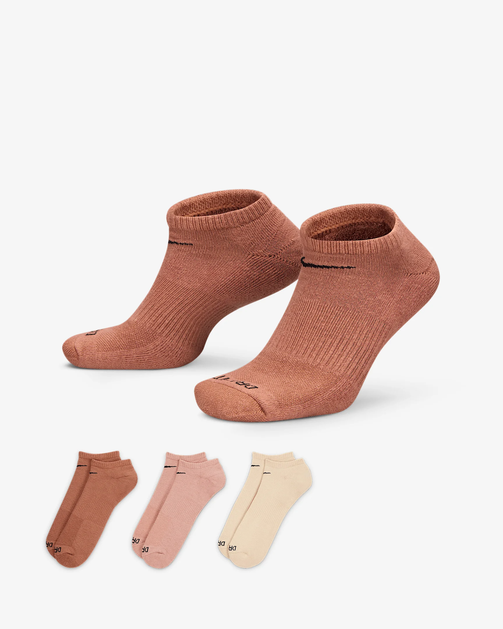 The Nike Everyday Plus Cushioned Socks bring comfort to your workout with extra cushioning under the heel and forefoot and a snug, supportive arch band. Sweat-wicking power and breathability up top help keep your feet dry and cool to help push you through that extra set. Benefits - Cushioning under the forefoot and heel helps soften the impact of your workout. - Dri-FIT technology helps your feet stay dry and comfortable. - Band around the arch feels snug and supportive. - Breathable knit pattern on top adds ventilation. - Reinforced heel and toe are made to last. Product Details - Fabric: 65-72% cotton/26-33% polyester/2% spandex - Machine wash - Imported - Note: Material percentages may vary depending on color. Check label for actual content. - Shown: Multi-Color - Style: SX6889-968