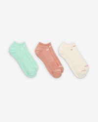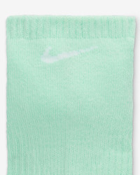 The Nike Everyday Plus Cushioned Socks bring comfort to your workout with extra cushioning under the heel and forefoot and a snug, supportive arch band. Sweat-wicking power and breathability up top help keep your feet dry and cool to help push you through that extra set. Benefits - Cushioning under the forefoot and heel helps soften the impact of your workout. - Dri-FIT technology helps your feet stay dry and comfortable. - Band around the arch feels snug and supportive. - Breathable knit pattern on top adds ventilation. - Reinforced heel and toe are made to last. Product Details - Fabric: 65-72% cotton/26-33% polyester/2% spandex - Machine wash - Imported - Note: Material percentages may vary depending on color. Check label for actual content. - Shown: Multi-Color - Style: SX6889-971