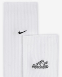 Pay homage to a sneakerhead staple while wrapping your feet in support and cushioning with these all-around socks made with soft, breathable fabric. Benefits - Nike Dri-FIT technology moves sweat away from your skin for quicker evaporation, helping you stay dry and comfortable. - Cushioning under the forefoot and heel helps soften the impact of your workout. - Band around the arch feels snug and supportive. - Breathable fabric on top helps keep your feet dry and ventilated. Product Details - Embroidered patch - Machine wash - Imported - Shown: White/Black - Style: FZ3076-100