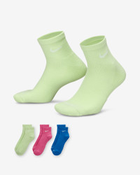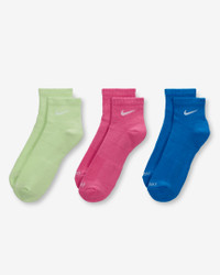The Nike Everyday Plus Cushioned Socks bring comfort to your workout with extra cushioning under the heel and forefoot and a snug, supportive arch band. Sweat-wicking power and breathability up top help keep your feet dry and cool to help push you through that extra set. Benefits - Cushioning under the forefoot and heel helps soften the impact of your workout. - Dri-FIT technology helps your feet stay dry and comfortable. - Band around the arch feels snug and supportive. - Breathable knit pattern on top adds ventilation. - Reinforced heel and toe are made to last. Product Details - 63-70% cotton/28-35% polyester/2% polyurethane - Note: Material percentages may vary. Check label for actual content. - Machine wash - Imported - Shown: Multi-Color - Style: SX6890-969