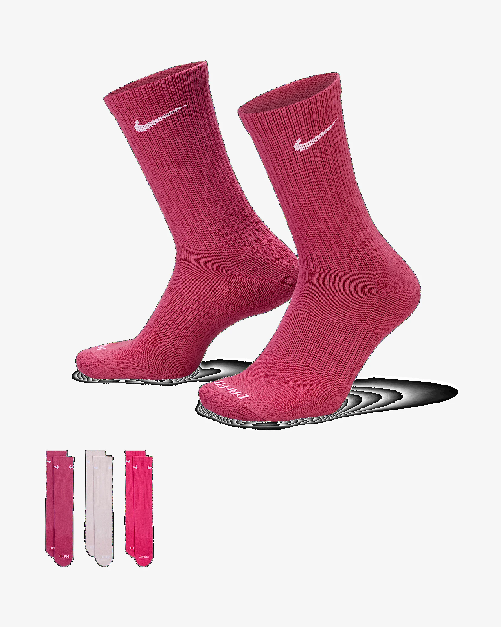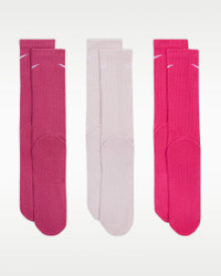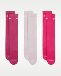 The Nike Everyday Plus Cushioned Socks bring comfort to your workout with extra cushioning under the heel and forefoot and a snug, supportive arch band. Sweat-wicking power and breathability up top help keep your feet dry and cool to help push you through that extra set. Benefits - Cushioning under the forefoot and heel helps soften the impact of your workout. - Dri-FIT technology helps your feet stay dry and comfortable. - Band around the arch feels snug and supportive. - Breathable knit pattern on top adds ventilation. - Reinforced heel and toe are made to last. Product Details - Fabric: 62-69% cotton/29-36% polyester/2% polyurethane - Note: Material percentages may vary depending on color. Check label for actual content. - Machine wash - Imported - Shown: Multi-Color - Style: SX6888-940