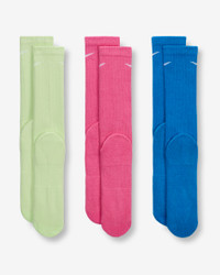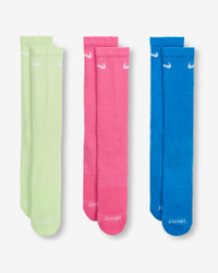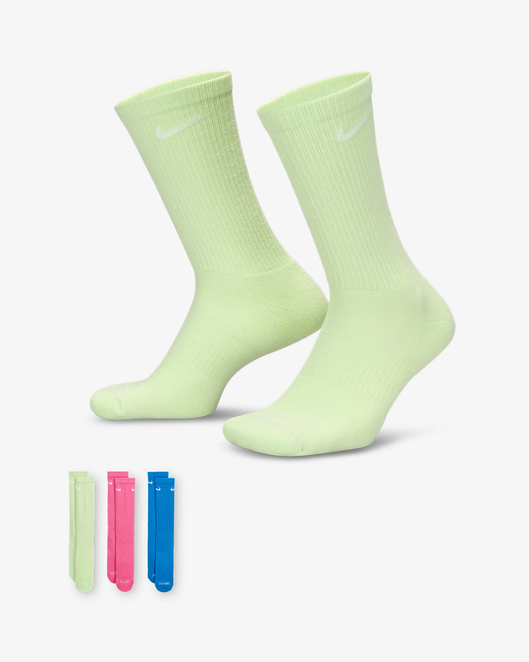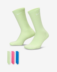 The Nike Everyday Plus Cushioned Socks bring comfort to your workout with extra cushioning under the heel and forefoot and a snug, supportive arch band. Sweat-wicking power and breathability up top help keep your feet dry and cool to help push you through that extra set. Benefits - Cushioning under the forefoot and heel helps soften the impact of your workout. - Dri-FIT technology helps your feet stay dry and comfortable. - Band around the arch feels snug and supportive. - Breathable knit pattern on top adds ventilation. - Reinforced heel and toe are made to last. Product Details - Fabric: 62-69% cotton/29-36% polyester/2% polyurethane - Note: Material percentages may vary depending on color. Check label for actual content. - Machine wash - Imported - Shown: Multi-Color - Style: SX6888-969