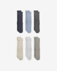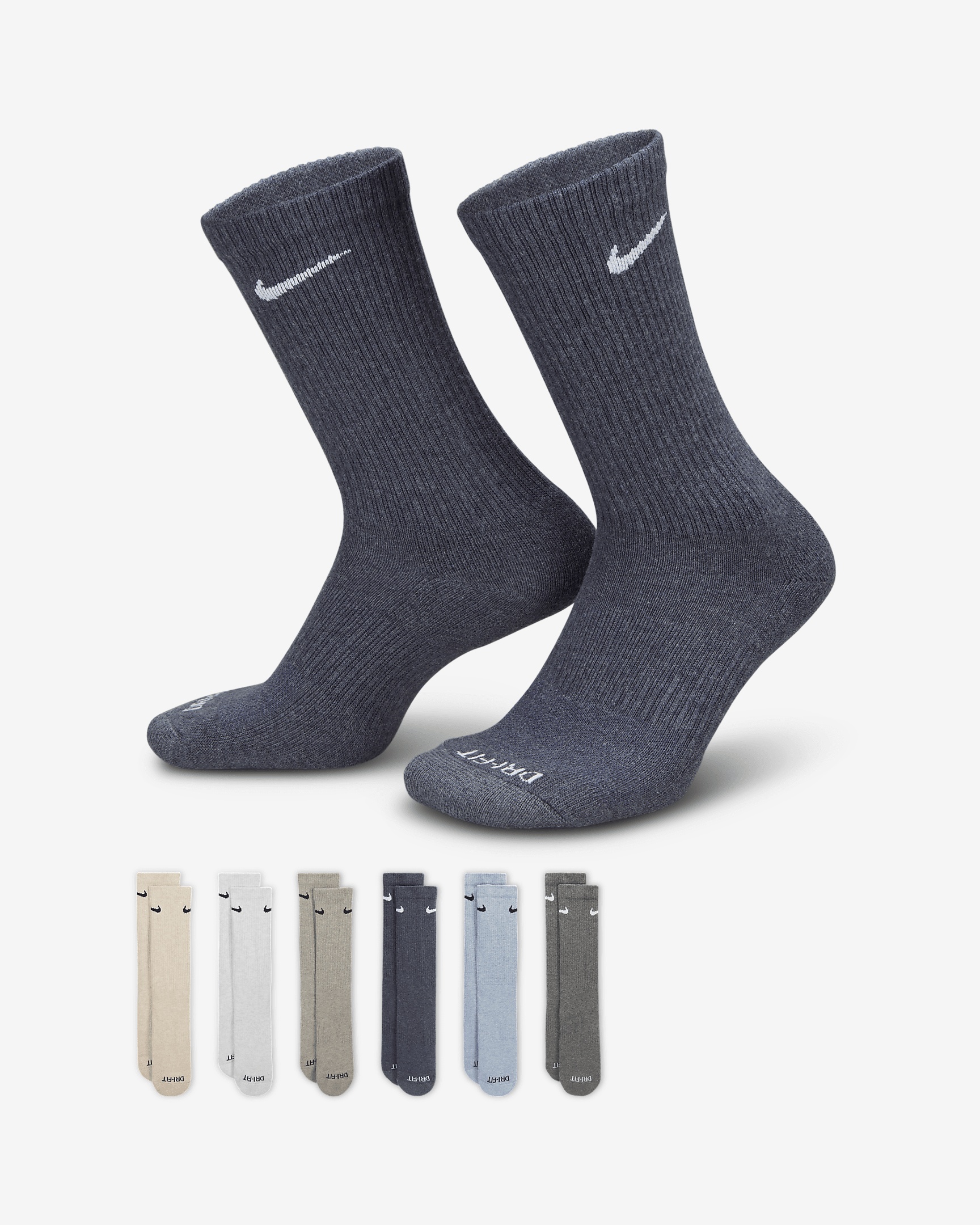 The Nike Everyday Plus Cushioned Socks bring comfort to your workout with extra cushioning under the heel and forefoot and a snug, supportive arch band. Sweat-wicking power and breathability up top help keep your feet dry and cool to help push you through that extra set. Benefits - Cushioning under the forefoot and heel helps soften the impact of your workout. - Dri-FIT technology helps your feet stay dry and comfortable. - Band around the arch feels snug and supportive. - Breathable knit pattern on top adds ventilation. - Reinforced heel and toe are made to last. Product Details - Fabric: 61-67% cotton/30-36% polyester/2% spandex/1% nylon - Machine wash - Imported - Note: Material percentages may vary slightly depending on color. Check label for actual content. - Shown: Multi-Color - Style: SX6897-901