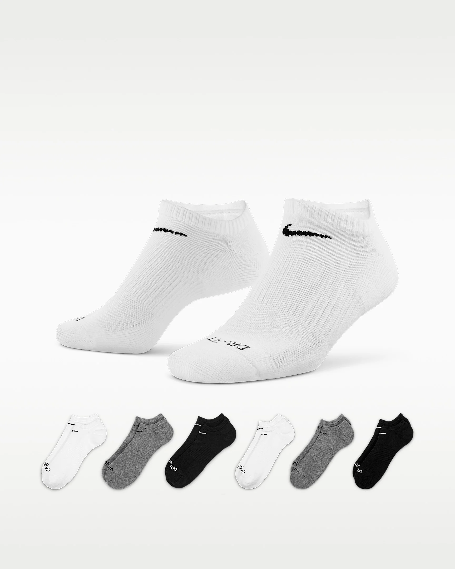 The Nike Everyday Plus Cushioned Socks bring comfort to your workout with extra cushioning under the heel and forefoot and a snug, supportive arch band. Sweat-wicking power and breathability up top help keep your feet dry and cool to help push you through that extra set. Benefits - Cushioning under the forefoot and heel helps soften the impact of your workout. - Dri-FIT technology helps your feet stay dry and comfortable. - Band around the arch feels snug and supportive. - Breathable knit pattern on top adds ventilation. - Reinforced heel and toe are made to last. Product Details - Fabric: 64-71% cotton/27-34% polyester/1% spandex/1% nylon - Machine wash - Imported - Note: Material percentages may vary. Check label for actual content. - Shown: Multi-Color - Style: SX6898-964