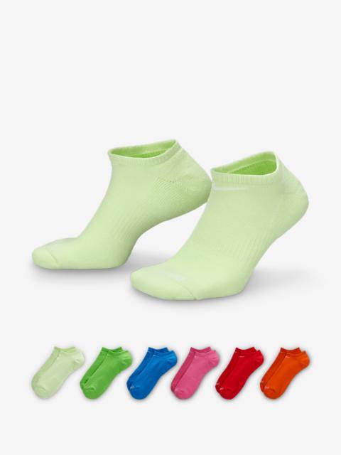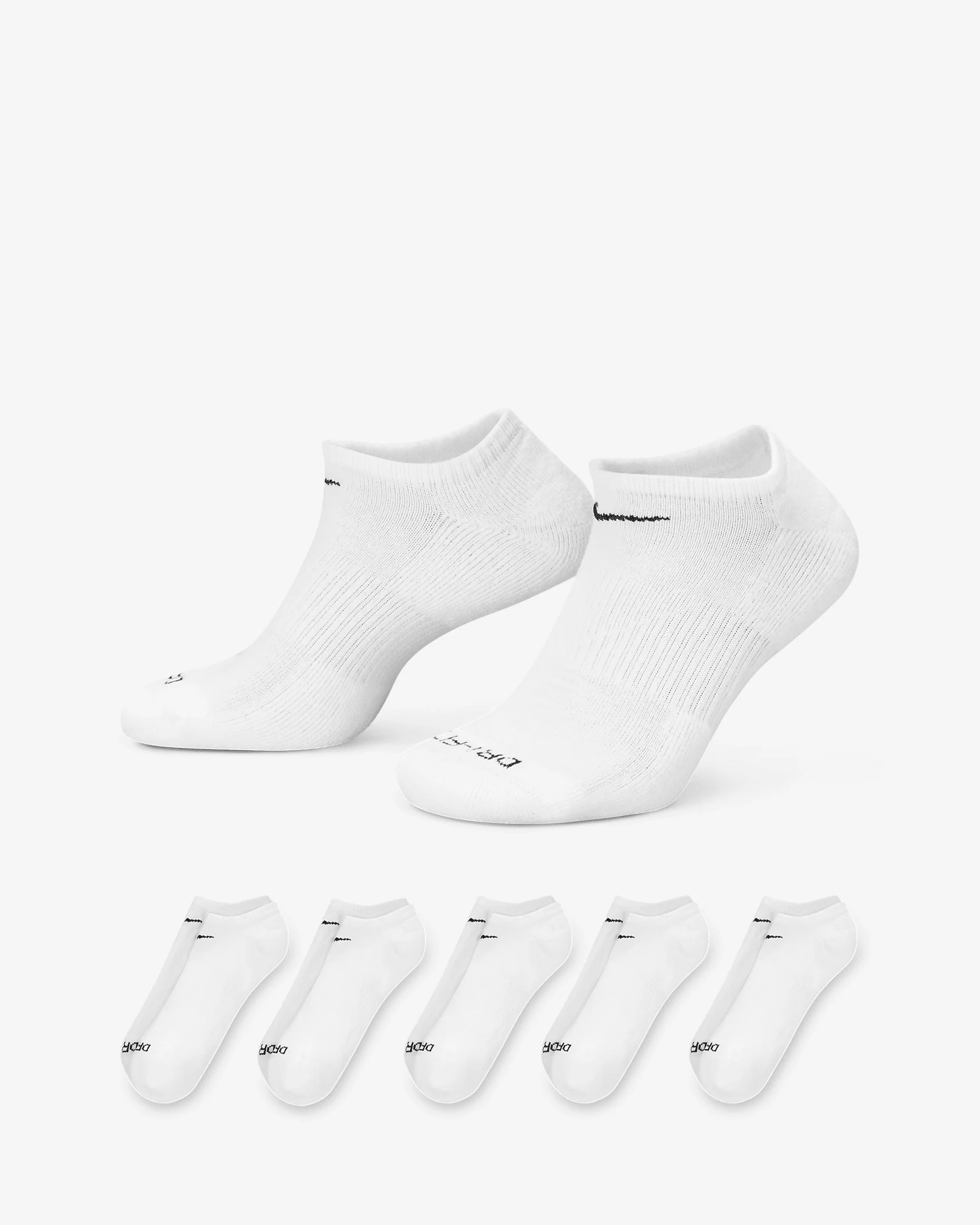 The Nike Everyday Plus Cushioned Socks bring comfort to your workout with extra cushioning under the heel and forefoot and a snug, supportive arch band. Sweat-wicking power and breathability up top help keep your feet dry and cool to help push you through that extra set. Benefits - Cushioning under the forefoot and heel helps soften the impact of your workout. - Dri-FIT technology helps your feet stay dry and comfortable. - Band around the arch feels snug and supportive. - Breathable knit pattern on top adds ventilation. - Reinforced heel and toe are made to last. Product Details - Fabric: 64-71% cotton/27-34% polyester/1% spandex/1% nylon - Machine wash - Imported - Note: Material percentages may vary. Check label for actual content. - Shown: White/Black - Style: SX6898-100
