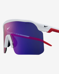 The Nike Expedition Shield perfectly balances sport and style, inspired by the intersection where both paths converge— like your own dynamic lifestyle. Its expansive wrap lens, minimalist top bar, and textured grip nose pad are designed to complement your versatility. With Nike Max+ vision, experience distraction-free clarity for wherever the day may lead you. Benefits - Frame size: 61mm lens width; 18mm bridge width; 140mm temple length - Nike Field Tint mutes bright light while enhancing your ability to track objects - Nike Max + helps reduce light reflection and provides precise vision from all angles. - 5-base curved shield offers medium coverage with moderate peripheral light blockage. - Soft, injected rubber inlay nose pads provide stability and grip Product Details - Injected frame material is derived from at least 40% castor bean oil. - 100% UVA/UVB protection. - Shown: White/University Red - Style: NKIH0899-100