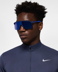 The Nike Expedition Shield perfectly balances sport and style, inspired by the intersection where both paths converge— like your own dynamic lifestyle. Its expansive wrap lens, minimalist top bar, and textured grip nose pad are designed to complement your versatility. With Nike Max+ vision, experience distraction-free clarity for wherever the day may lead you. Benefits - Nike Max + helps reduce light reflection and provides precise vision from all angles. - 5-base curved shield offers medium coverage with moderate peripheral light blockage. - Soft, injected rubber inlay nose pads provide stability and grip Product Details - Injected frame material is derived from at least 40% castor bean oil. - 100% UVA/UVB protection. - Frame size: 61mm lens width; 18mm bridge width; 140mm temple length - Shown: Blue Void - Style: IB6562X-492
