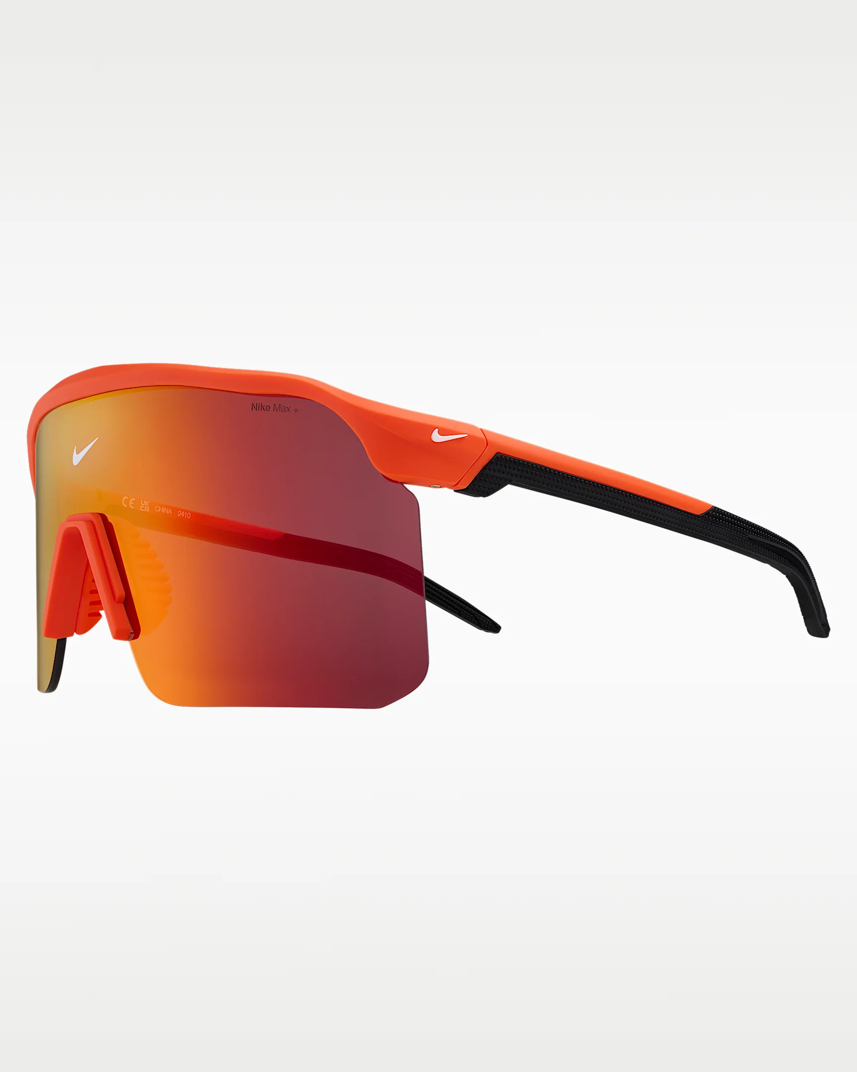 The Nike Expedition Shield perfectly balances sport and style, inspired by the intersection where both paths converge— like your own dynamic lifestyle. Its expansive wrap lens, minimalist top bar, and textured grip nose pad are designed to complement your versatility. With Nike Max+ vision, experience distraction-free clarity for wherever the day may lead you. Benefits - Frame size: 61mm lens width; 18mm bridge width; 140mm temple length - Nike Road Tint blocks harsh light on the track and road - Nike Max + helps reduce light reflection and provides precise vision from all angles. - 5-base curved shield offers medium coverage with moderate peripheral light blockage. - Soft, injected rubber inlay nose pads provide stability and grip Product Details - Injected frame material is derived from at least 40% castor bean oil. - 100% UVA/UVB protection. - Shown: Team Orange - Style: NKIH0899-891