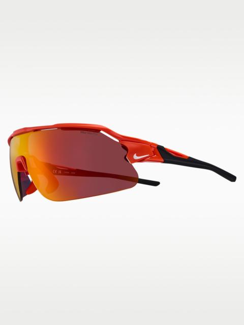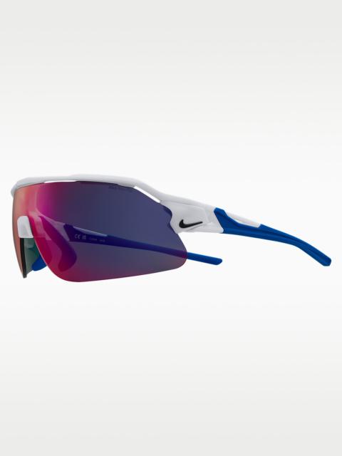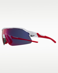 Never let a new environment change how you choose to sport. Introducing the latest edition of the Nike Flyfree stripped down for pure performance. The Nike Flyfree Shield offers a panoramic, single-lens design with the same interchangeable lens options to enhance performance in any environment. The adjustable nose pads and temples are made to provide constant comfort and support. Benefits - Frame size: 72mm lens width; 5mm bridge width; 130mm temple length - Nike Field Tint mutes bright light while enhancing your ability to track objects - Nike Max Pro helps reduce light reflection while repelling water and oil for a clearer view of what's ahead. - 6-base curved lens offers medium coverage with moderate peripheral light blockage - Adjustable nose pads and temples with silicone sleeves provide enhanced grip and optimal fit. Product Details - Injected frame material is derived from at least 40% castor bean oil - Includes extra interchangeable lens - 100% UVA/UVB protection - Shown: White - Style: NKIF1107-104