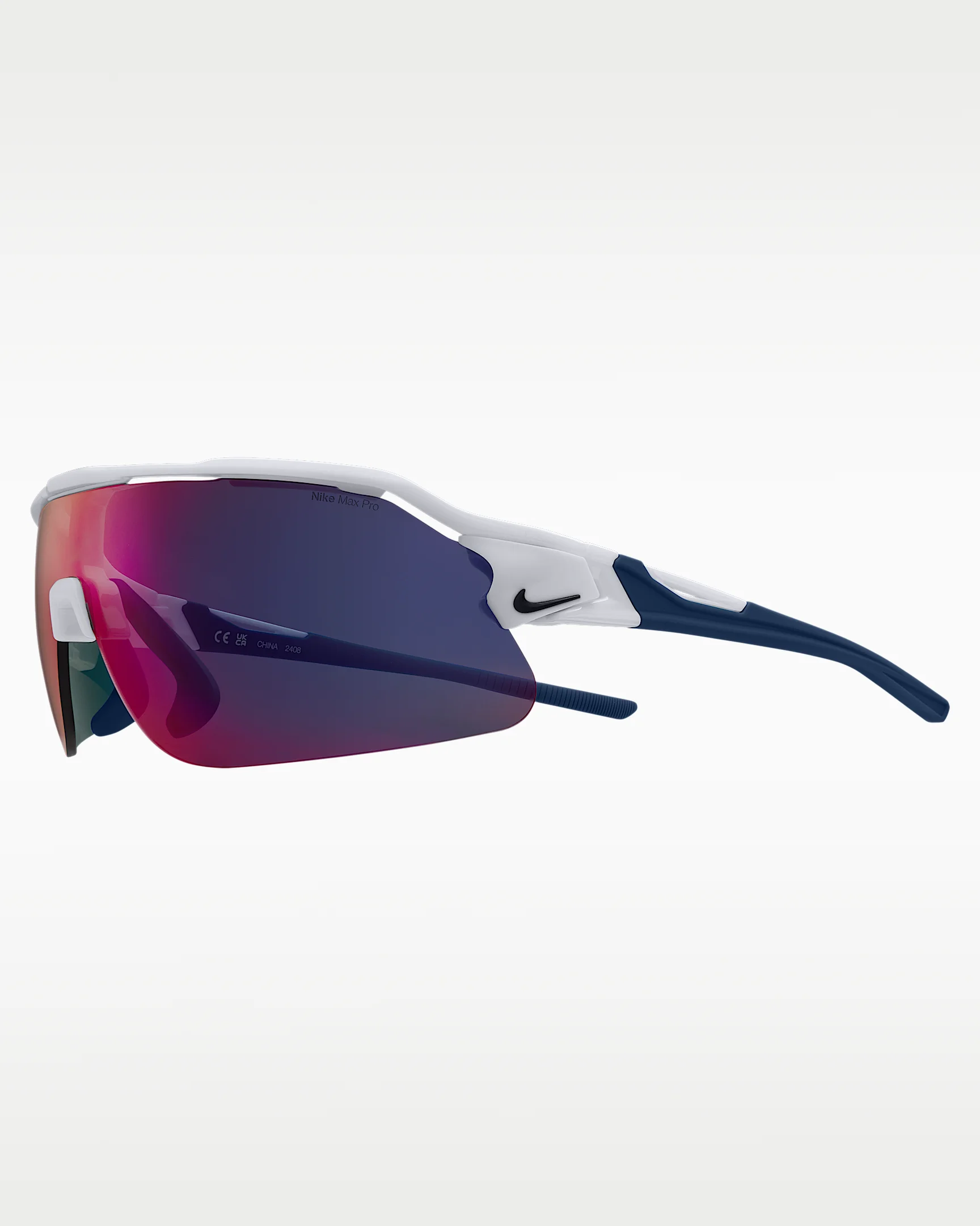 Never let a new environment change how you choose to sport. Introducing the latest edition of the Nike Flyfree stripped down for pure performance. The Nike Flyfree Shield offers a panoramic, single-lens design with the same interchangeable lens options to enhance performance in any environment. The adjustable nose pads and temples are made to provide constant comfort and support. Benefits - Frame size: 72mm lens width; 5mm bridge width; 130mm temple length - Nike Field Tint mutes bright light while enhancing your ability to track objects - Nike Max Pro helps reduce light reflection while repelling water and oil for a clearer view of what's ahead. - 6-base curved lens offers medium coverage with moderate peripheral light blockage - Adjustable nose pads and temples with silicone sleeves provide enhanced grip and optimal fit. Product Details - Injected frame material is derived from at least 40% castor bean oil - Includes extra interchangeable lens - 100% UVA/UVB protection - Shown: White - Style: NKIF1107-101