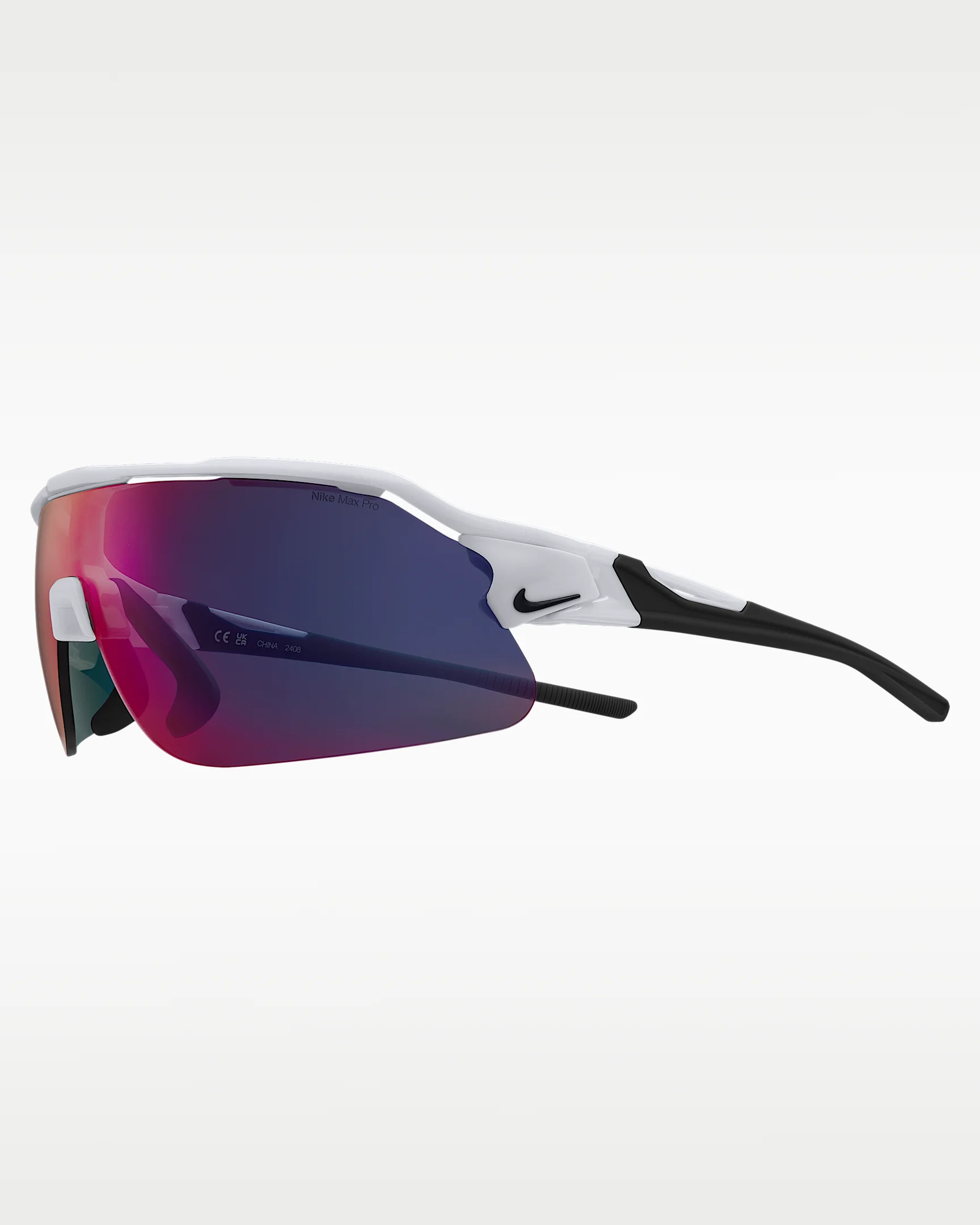 Never let a new environment change how you choose to sport. Introducing the latest edition of the Nike Flyfree stripped down for pure performance. The Nike Flyfree Shield offers a panoramic, single-lens design with the same interchangeable lens options to enhance performance in any environment. The adjustable nose pads and temples are made to provide constant comfort and support. Benefits - Frame size: 72mm lens width; 5mm bridge width; 130mm temple length - Nike Field Tint mutes bright light while enhancing your ability to track objects - Nike Max Pro helps reduce light reflection while repelling water and oil for a clearer view of what's ahead. - 6-base curved lens offers medium coverage with moderate peripheral light blockage - Adjustable nose pads and temples with silicone sleeves provide enhanced grip and optimal fit. Product Details - Injected frame material is derived from at least 40% castor bean oil - Includes extra interchangeable lens - 100% UVA/UVB protection - Shown: White - Style: NKIF1107-100
