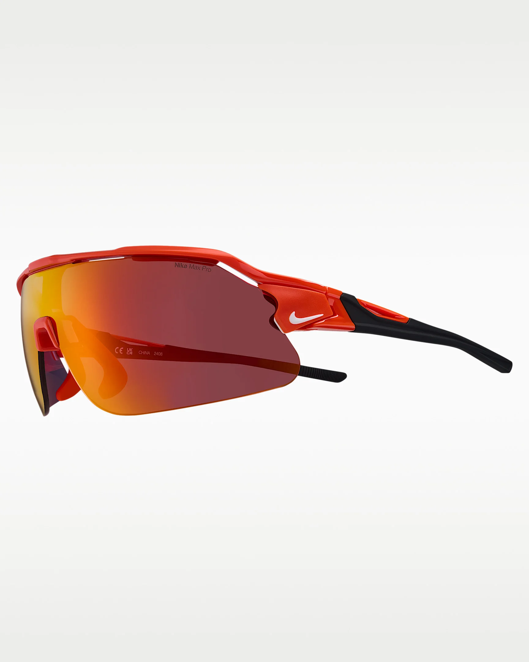 Never let a new environment change how you choose to sport. Introducing the latest edition of the Nike Flyfree stripped down for pure performance. The Nike Flyfree Shield offers a panoramic, single-lens design with the same interchangeable lens options to enhance performance in any environment. The adjustable nose pads and temples are made to provide constant comfort and support. Benefits - Frame size: 72mm lens width; 5mm bridge width; 130mm temple length - Nike Road Tint blocks harsh light on the track and road - Nike Max Pro helps reduce light reflection while repelling water and oil for a clearer view of what's ahead. - 6-base curved lens offers medium coverage with moderate peripheral light blockage - Adjustable nose pads and temples with silicone sleeves provide enhanced grip and optimal fit. Product Details - Shown: Team Orange - Style: NKIF1107-891